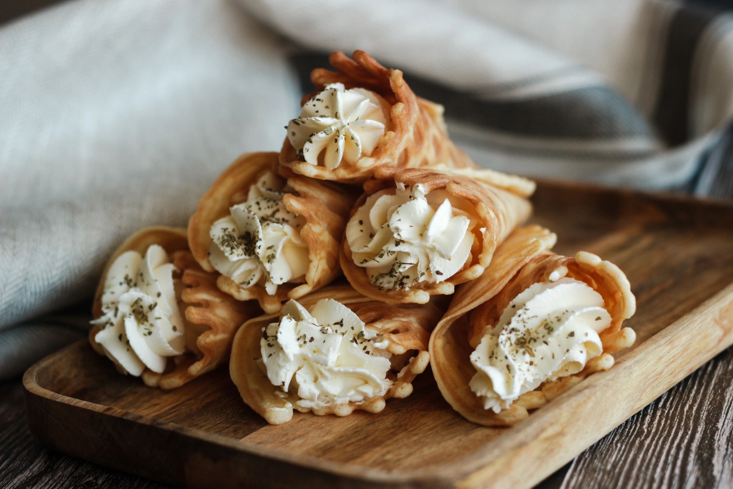 Introducing our Pizzelle Cookie, Shaped In A Cylander and Filled with Smooth Creamy Cannoli Filling
